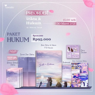 Yang ada dalam novel dikta & hukum karya dhia'an . Dikta & hukum penulis : Minable, emang bedanya dikta & hukum di au twitter sama di novel apa sihh?. 13 x 19 cm halaman : Pengiriman ke dki jakarta ongkos kirim 0 khusus member grobprime, join.